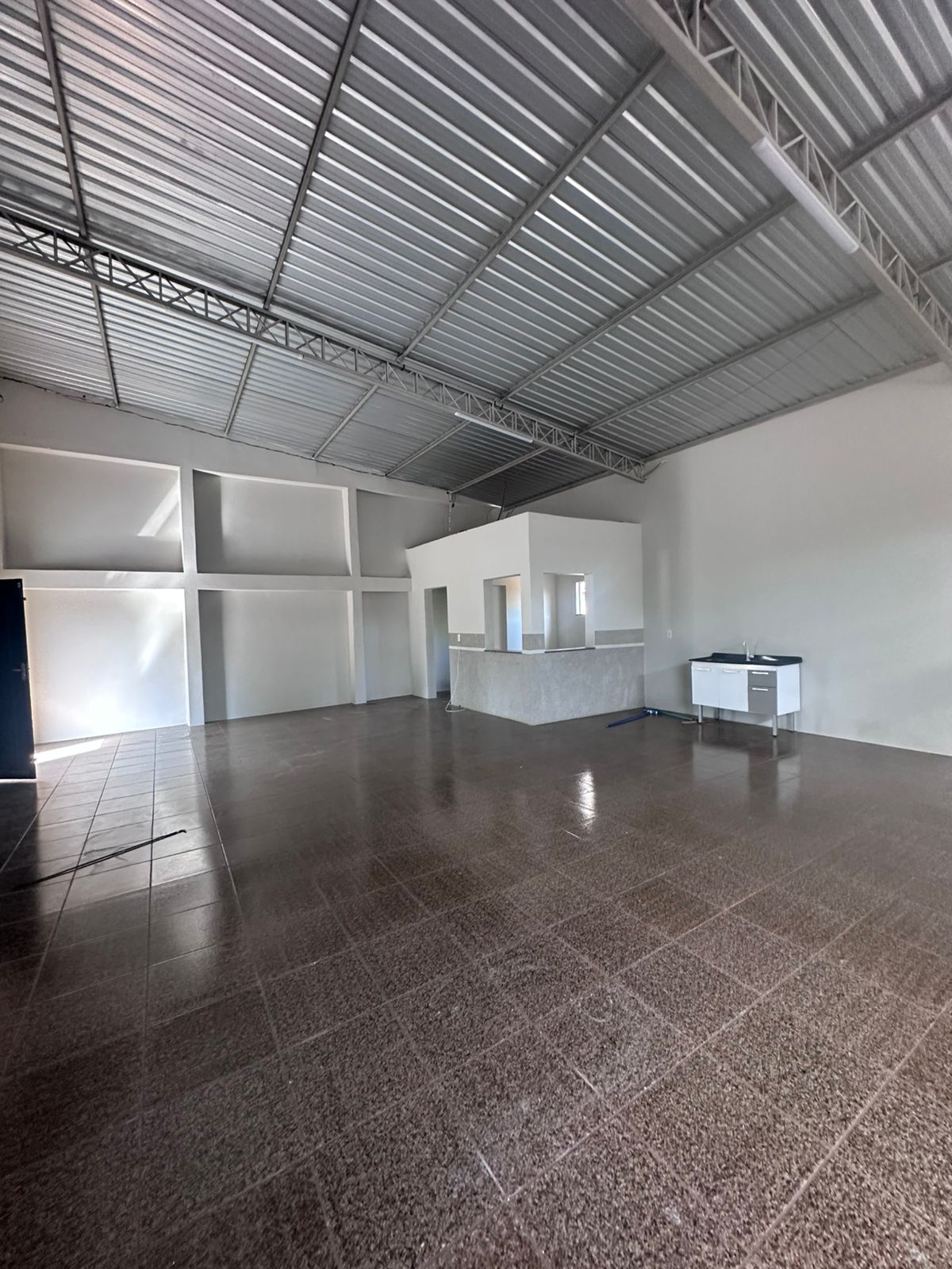 Imóvel beneficiado com salão e banheiro.